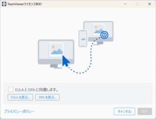 - 「EULAとDPAに同意します」のチェックボックスにチェックを入れ、「続行」をクリックします。